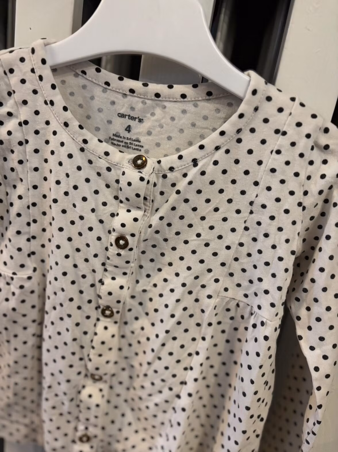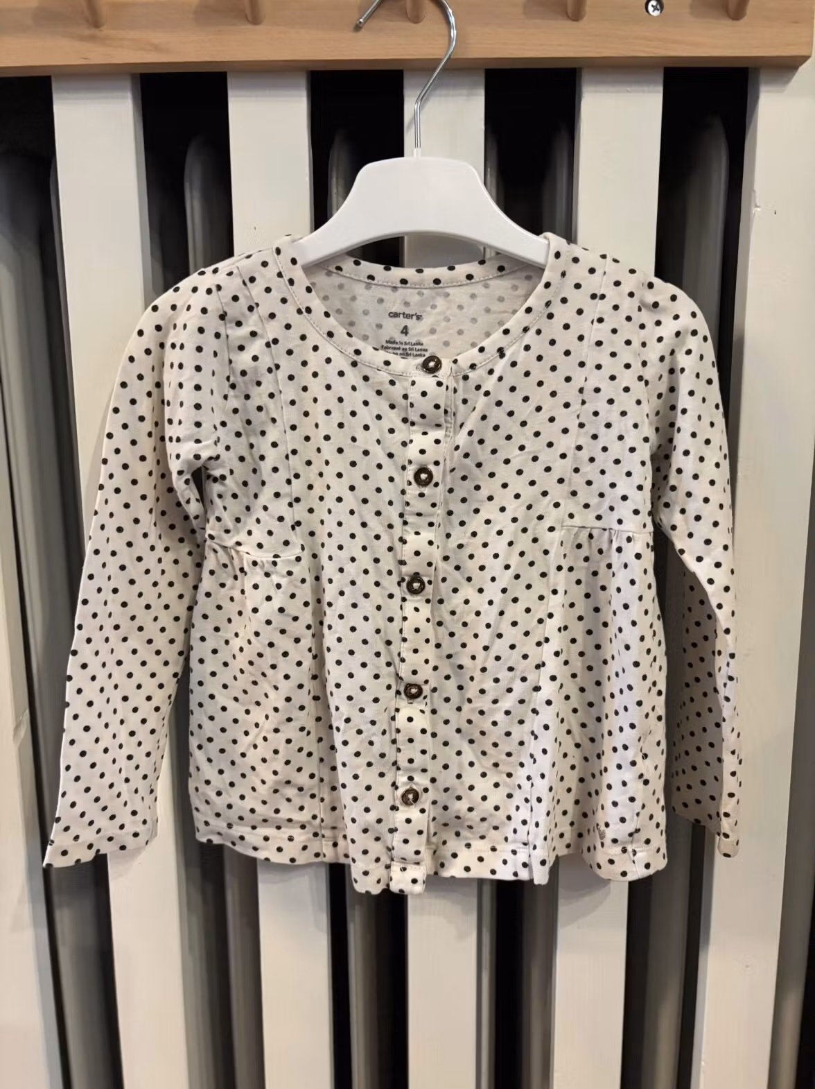 Prickig topp med knappar som passar barnet som är 4 år gammal.Är även väldigt söt baktill, se bilder.Prisvärt och hållbart alternativ.