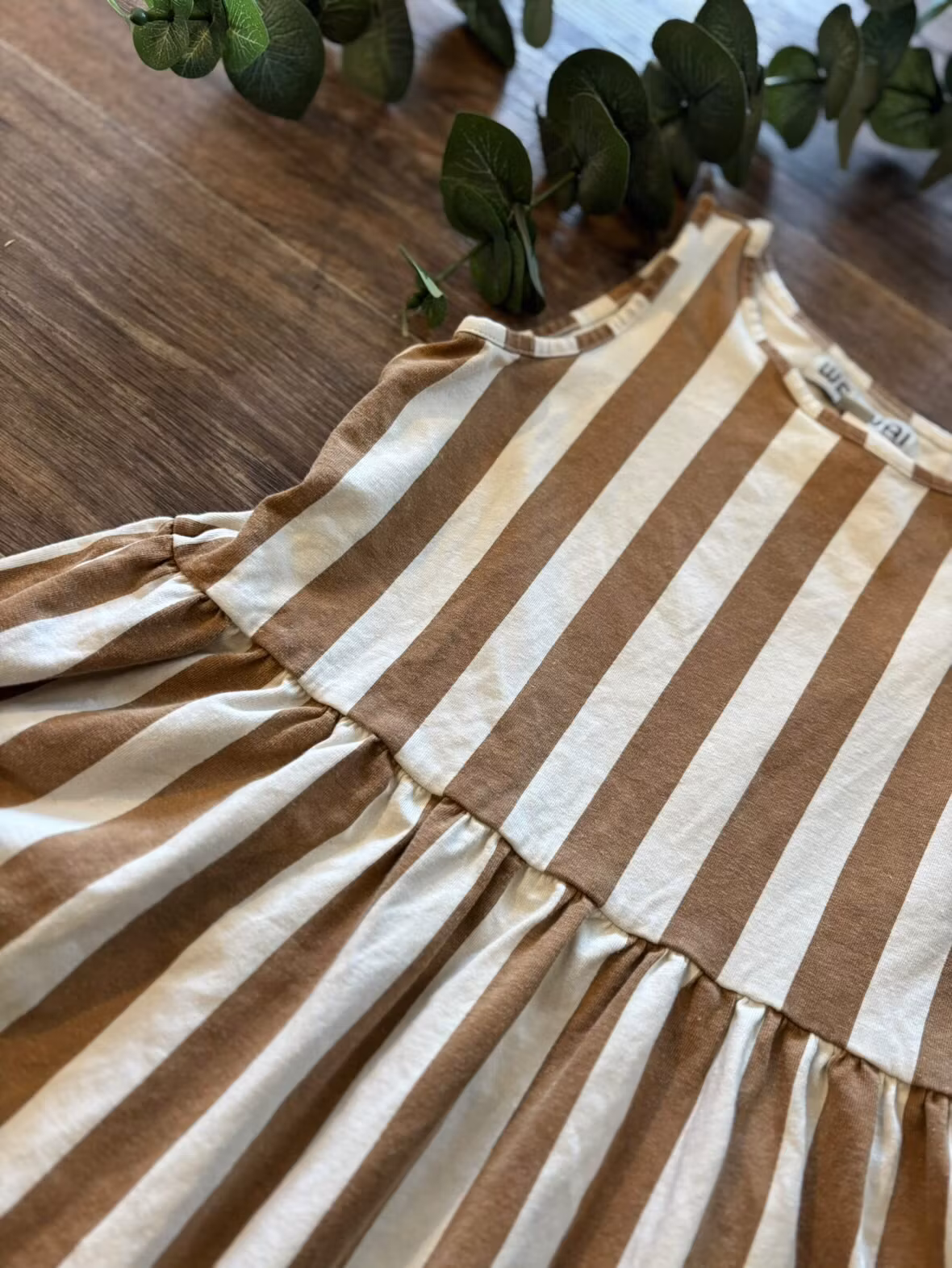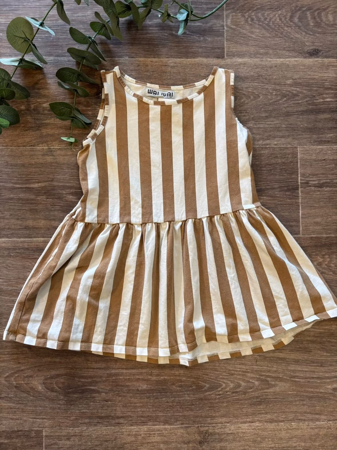 Brun och vit randig klänning i från märket wai wai.Funkar toppen som den är eller tillsammans med en kofta och strumpbyxor en kyligare dag.Bra, hållbart & p