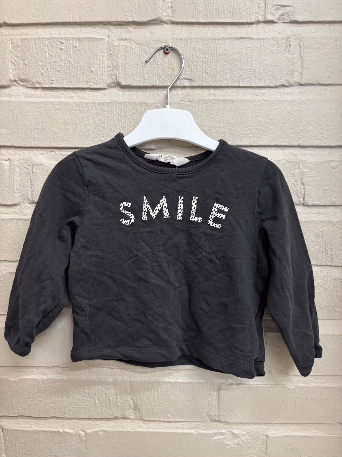 I storlek 92 från H&M, med texten smile.