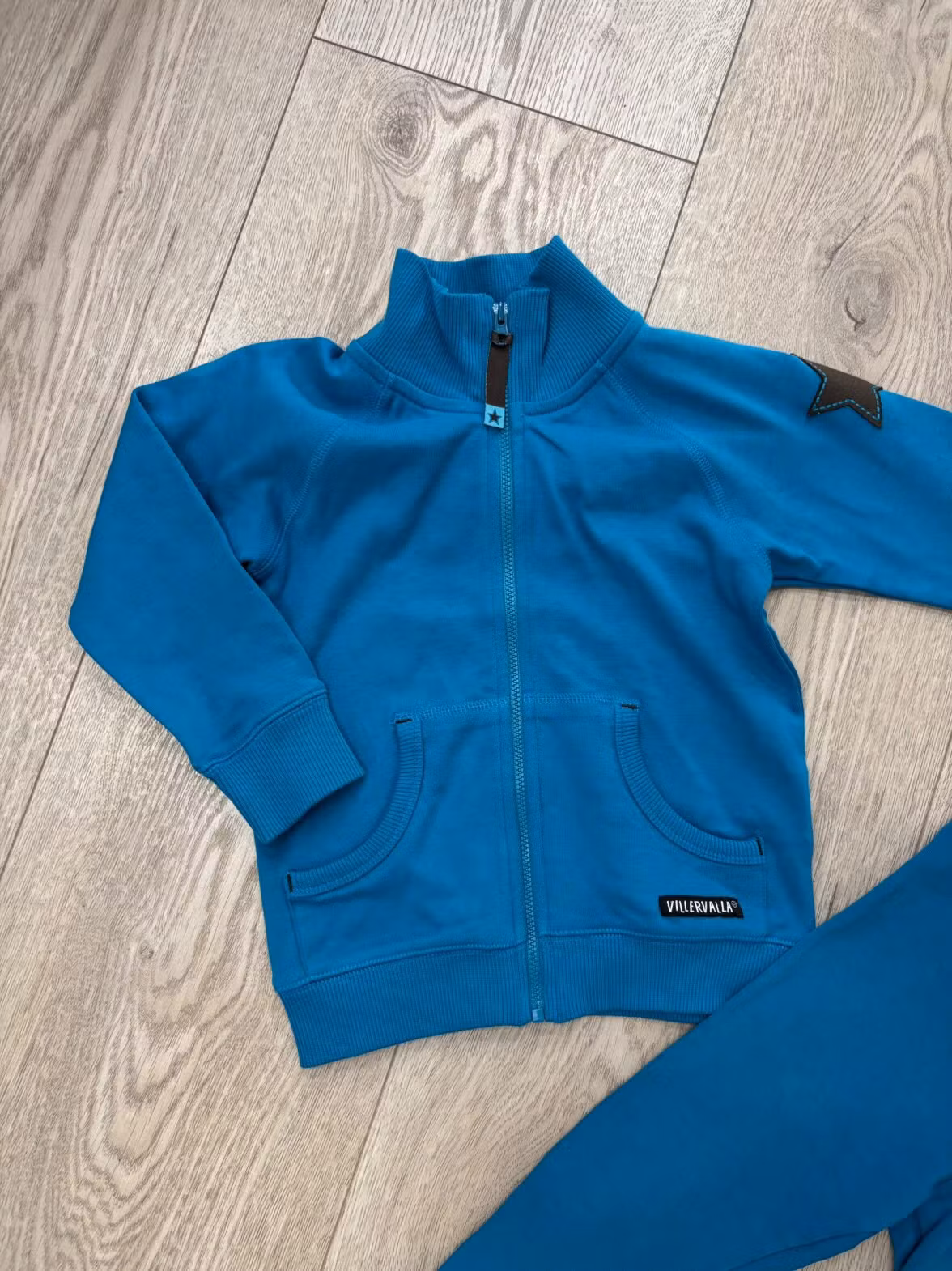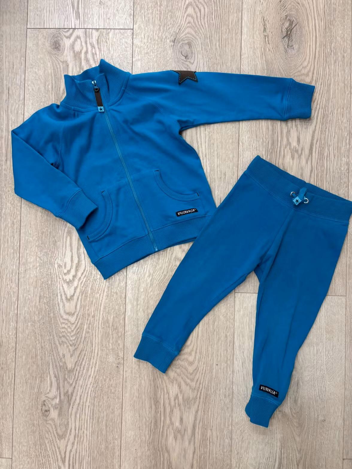 Det perfekta second hand myssetet från Villervalla.Skönt och gott material för den som gillar att mysa runt i mjukiskläder. Storlek 92 i underbart härlig färg.H
